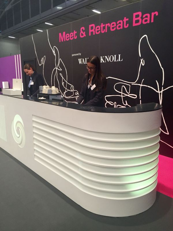 Expo Real is the largest Real Estate and investment trade fair in Europe. Every year, professionals from all over the world gather in Munich in early October and get updated on what is happening in all the important sectors – from conception and design through to investment and financing, and from realisation and marketing to operation and use. Visitors meet at the exclusive Meet & Retreat Lounge where they are greeted at a backlit counter made of Corian® in Glacier White and Deep Black Quartz colours, designed by hms architekten of Ludwigsburg. Another hot spot during the fair is The Lounge – an area hosted by trade magazine Hospitality Inside. Here, one of the centre pieces is a countertop made of Corian® in Caviar colour. At both venues, guests can recharge their mobile devices on Corian® Charging Surface: cubes made with Corian® equipped with wireless recharging technology.